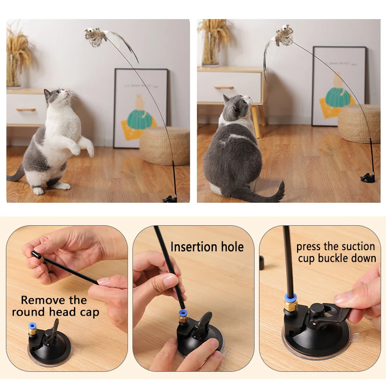 Suction cup type: You can fix it on the floor or wall, and the cat will play with it. You can separate the stick from the base, hold it and play with the cat.