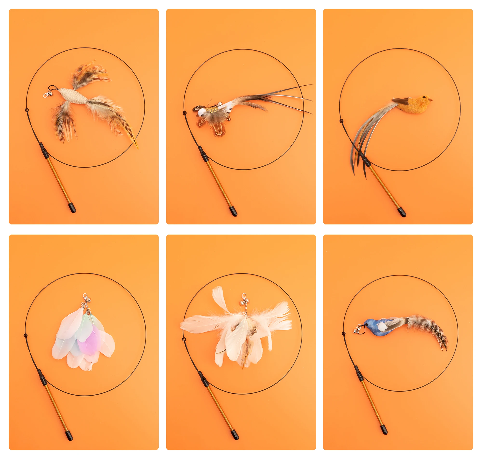 Simulation Bird interactive Cat Toy Funny Feather Bird with Bell Cat Stick Toy for Kitten Playing Teaser Wand Toy Cat Supplies